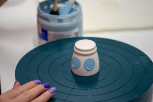 Vi benytter leire som ikke inneholder farlige stoffer eller metaller. Etter tørking råbrennes keramikken på 975 °C. Designet males deretter for hånd med underglassur og brennes på nytt ved 975 °C, slik at farger og mønstre trer tydelig frem. Avslutningsvis påføres overglassur før en siste brenning på 1220 °C i 10–12 timer, som gir keramikken sin styrke, glans og slitestyrke.